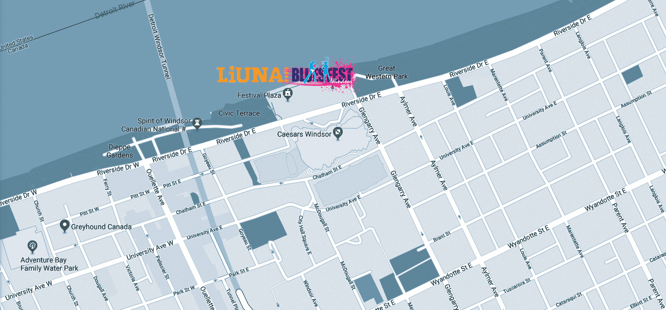 LiUNA! Bluesfest takes place at Festival Plaza, located on the Windsor waterfront, overlooking the awesome Detroit skyline.